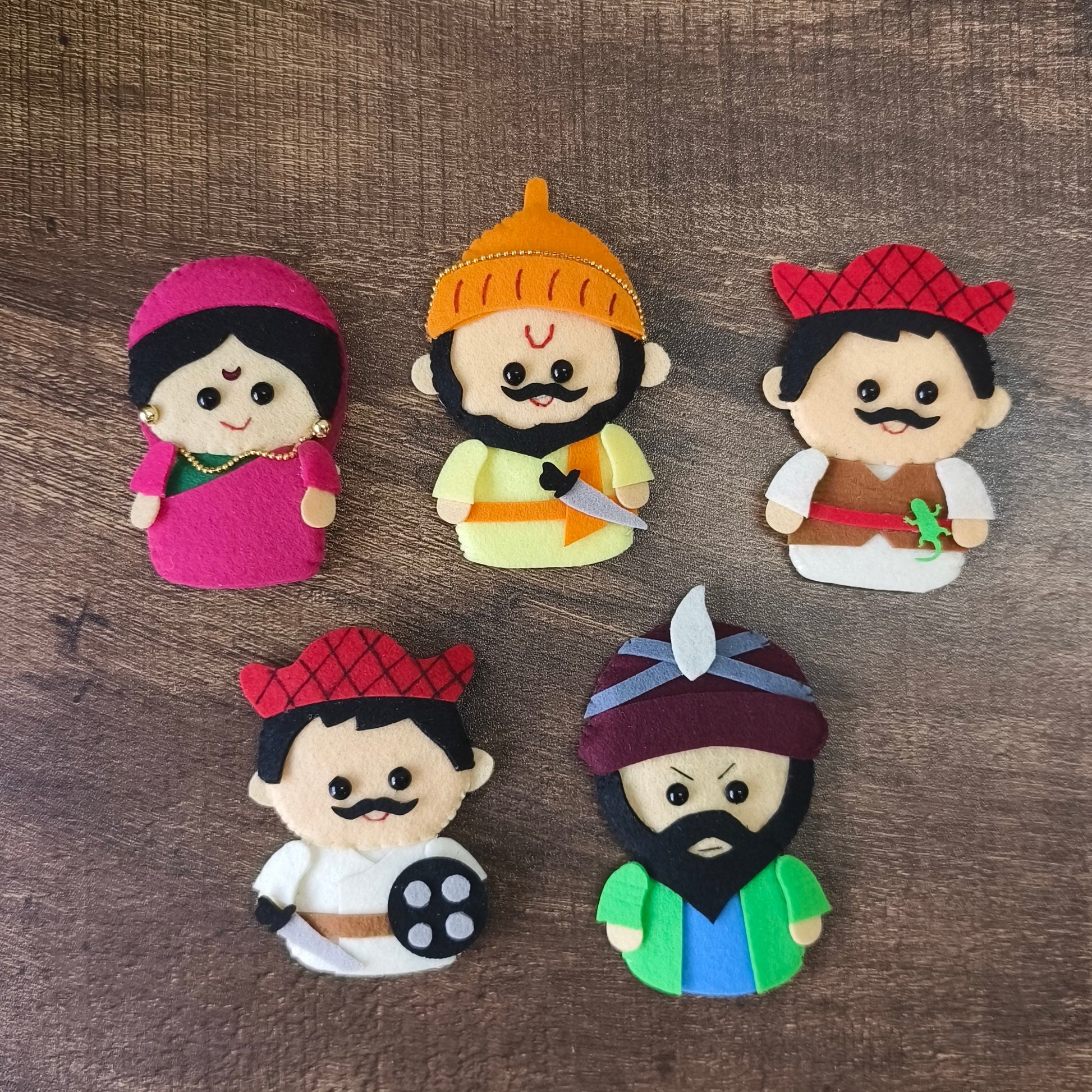 Introduce children to the inspiring stories of Maratha history through play! This beautifully crafted finger puppet set features 5 iconic characters —