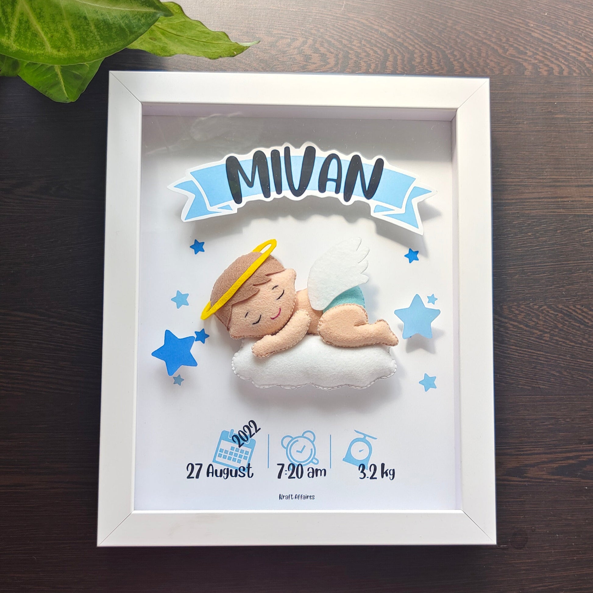 Celebrate the magical moment of a baby’s arrival with this handcrafted Birth Memory Frame from Kraft Affaires. This keepsake beautifully captures all the important birth details – name, date, time, weight, and height – in a charming and personalised style.